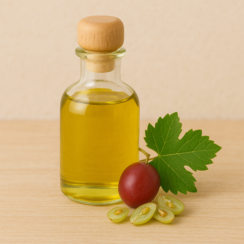 Grapeseed oil, jojoba oil, argan oil, vitamin e oil, tea tree oil and proprietary blend of essential oils.